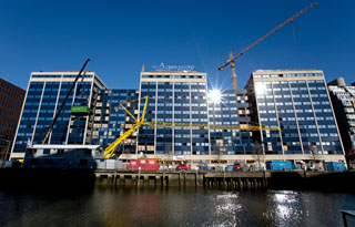 Het is een van de grootste transformaties van Nederland: de ombouw van het voormalige kantoorgebouw De Admiraliteit (40.000 m2) in Rotterdam tot bijna 600 appartementen en woonstudio’s. IMd Raadgevende Ingenieurs ontwikkelde een tijdelijke constructie die ervoor zorgt dat twee 50 meter hoge bouwkranen op de bestaande parkeergarage kunnen staan – zonder extra funderingspalen. Onlangs is de uitvoering begonnen.
