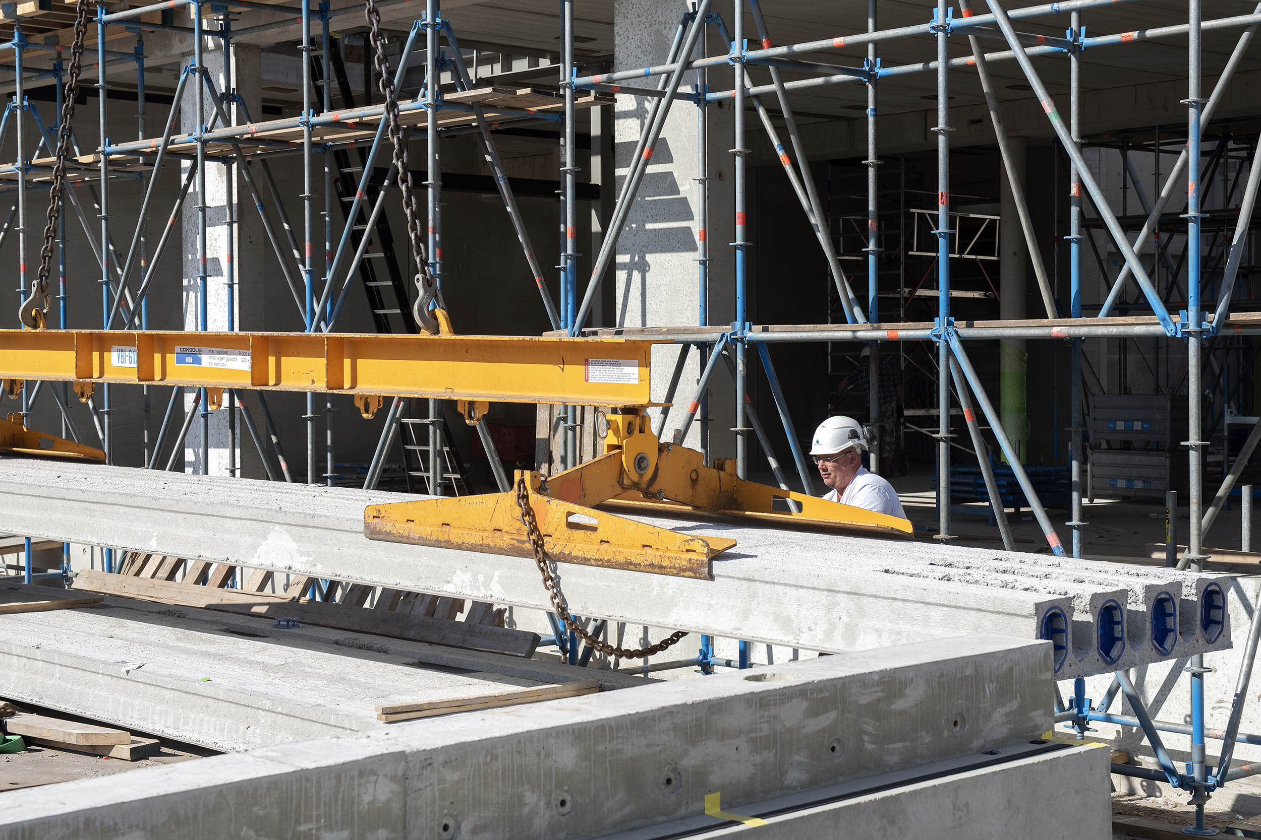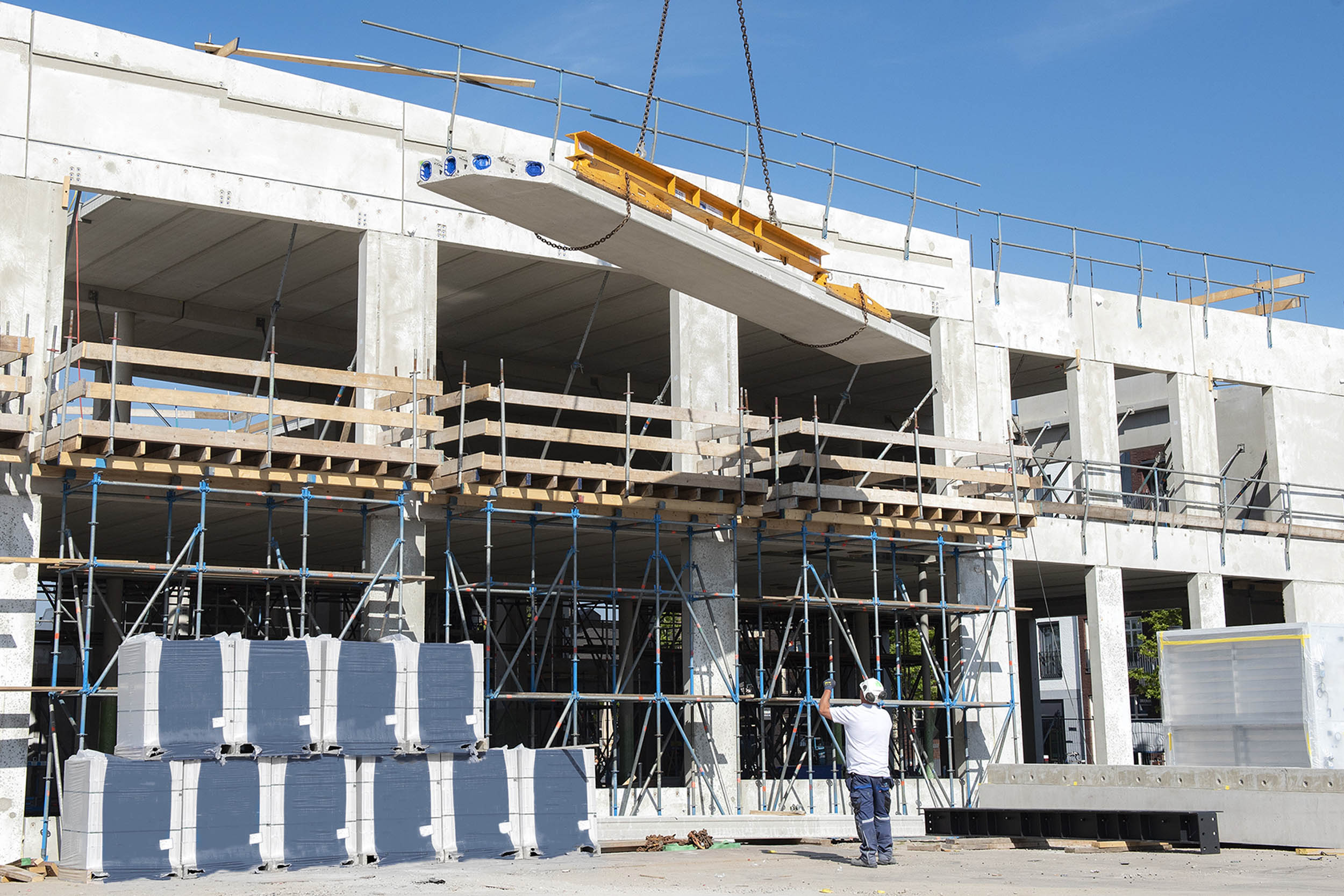 Voor de transparantie in de bibliotheek worden hoge vides in de verdiepingen van de onderbouw gemaakt. Deze vides hebben spectaculaire, grillige vloerranden die op maat zijn gemaakt en aan de kanaalplaatvloeren zijn gestort.