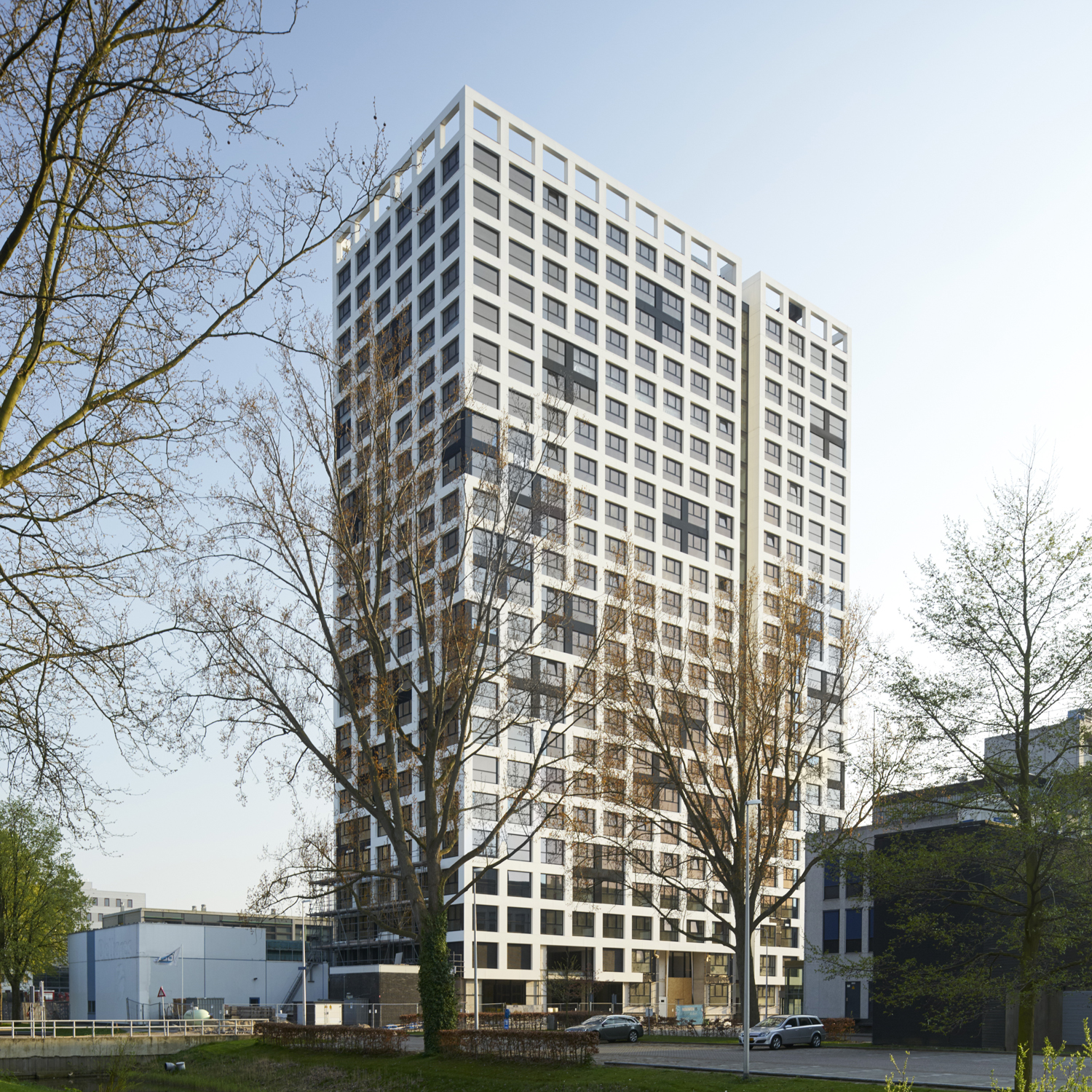 Bouwsysteem leidend bij constructief ontwerp De constructie van de nieuwbouwtoren is zo ontworpen, dat het met diverse bouwsystemen kon worden gerealiseerd én dat de appartementen eenvoudig kunnen worden samengevoegd tot grotere, reguliere woningen. Dit is mogelijk door niet alle wanden tussen de appartementen dragend uit te voeren. In een hoofdstramien van zeven meter passen twee appartementen. Door deze te scheiden met een lichte wand, zijn in de toekomst tweemaal zo grote appartementen mogelijk.