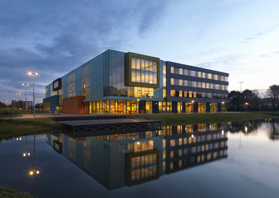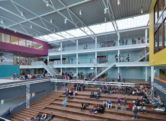 Door de ligging aan een plein is het vierlaagse gebouw van iedere zijde goed zichtbaar. De transparante gevels bieden optimaal zicht in het gebouw. Een gebouw dat niet op een school lijkt, noemt DP6 hun ontwerp zelf. Het sportcomplex in het hart van de school zal straks ook ’s avonds en in het weekend zelfstandig worden gebruikt.
