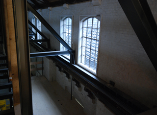 De sleutel tot de bijzondere oplossing is een kraanbaan in Zuiveringshal Oost, een ruimte van 40 bij 17 meter. Hierin is onder meer de theaterzaal ondergebracht. Consoles en penanten aan de langsgevels droegen voorheen de grote belasting van de kraanbaan af naar de fundering. Die aanwezige draagkracht is prima opnieuw te gebruiken, zo adviseerde ingenieursbureau IMd. De 125 jaar oude constructie moest als onderdeel van het monument sowieso behouden blijven.