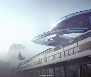 MAD Architects heeft nieuwe beelden naar buiten gebracht van de transformatie van FENIX in Rotterdam. IMd is als hoofdconstructeur zowel betrokken bij de restauratie van het bestaande casco van de loods, als voor de uitdagende constructie van het uitkijkplatform bovenop de loods, dat voortkomt uit omhoog spiralende trappen (‘de tornado’).