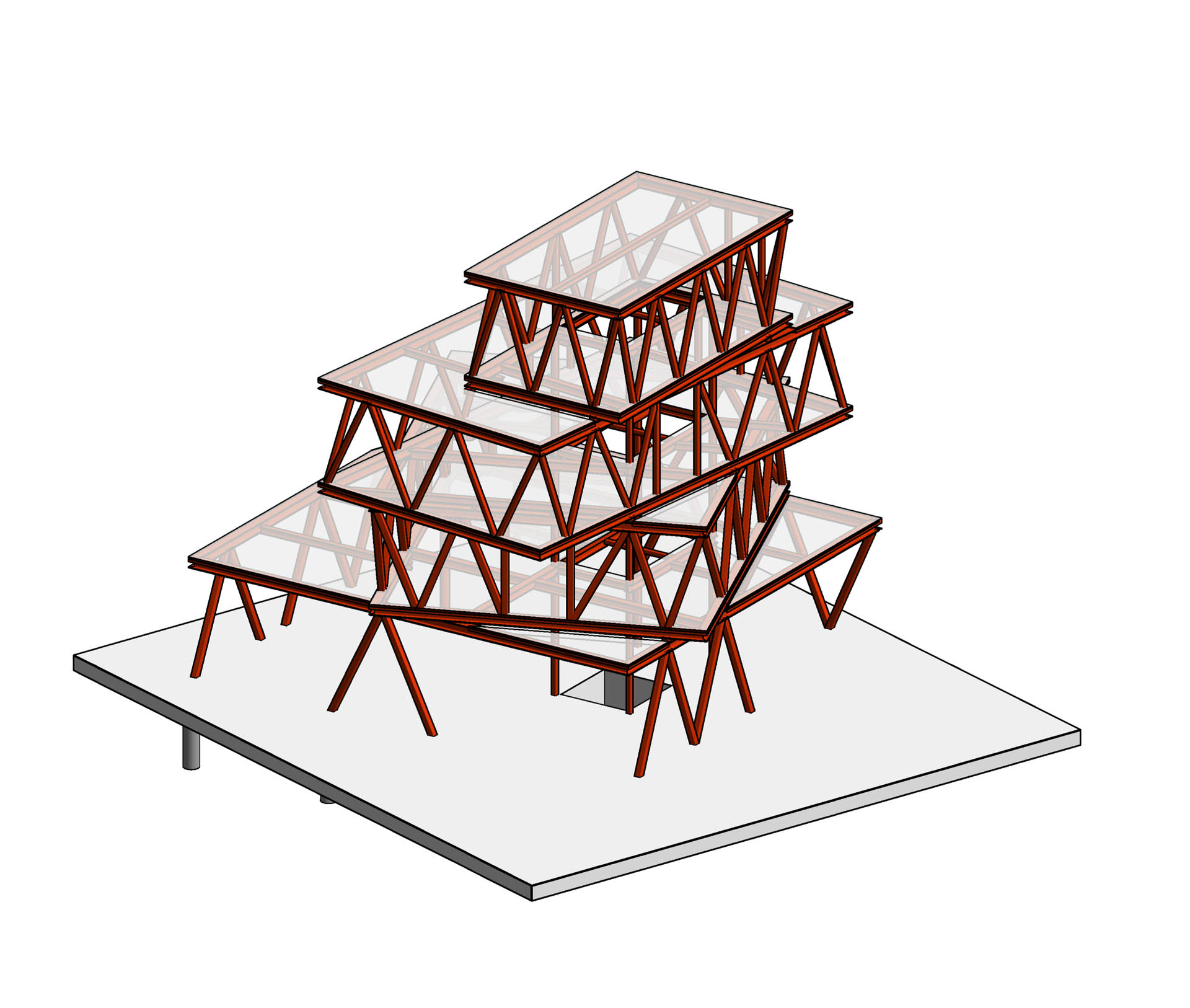 Asics World is de eyecatcher van het gebouw. Hier worden verschillende merken van Asics gepresenteerd in een vierlaagse showcase. De showcase bestaat uit willekeurig gestapelde volumes met dragende vakwerken. De volumes zijn ten opzichte van elkaar gedraaid gestapeld en dragen middels dragende vakwerken in de gevel hun belasting af op een overgangsplaat op de begane grondvloer. Een overgangsplaat was hier benodigd om de kolomstelling gunstig uit te laten komen ten opzichte van de parkeervakken en rijbanen. De indrukwekkende showcase is eigenlijk een gebouw in een gebouw.
