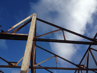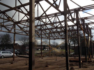 Om contactgeluid tussen de woningen te voorkomen, worden de stalen spanten ter plaatse van de woningscheidende wanden ontkoppeld. Zo wordt ook meteen voorkomen dat de vakwerkspanten brandwerend bekleed moeten worden. De spanten worden straks namelijk gedragen door de woningscheidende wanden, uitgevoerd in houtskeletbouw. In iedere woning blijven minimaal één hoofdspant en meerdere dwarsspanten van het sheddak in het zicht.