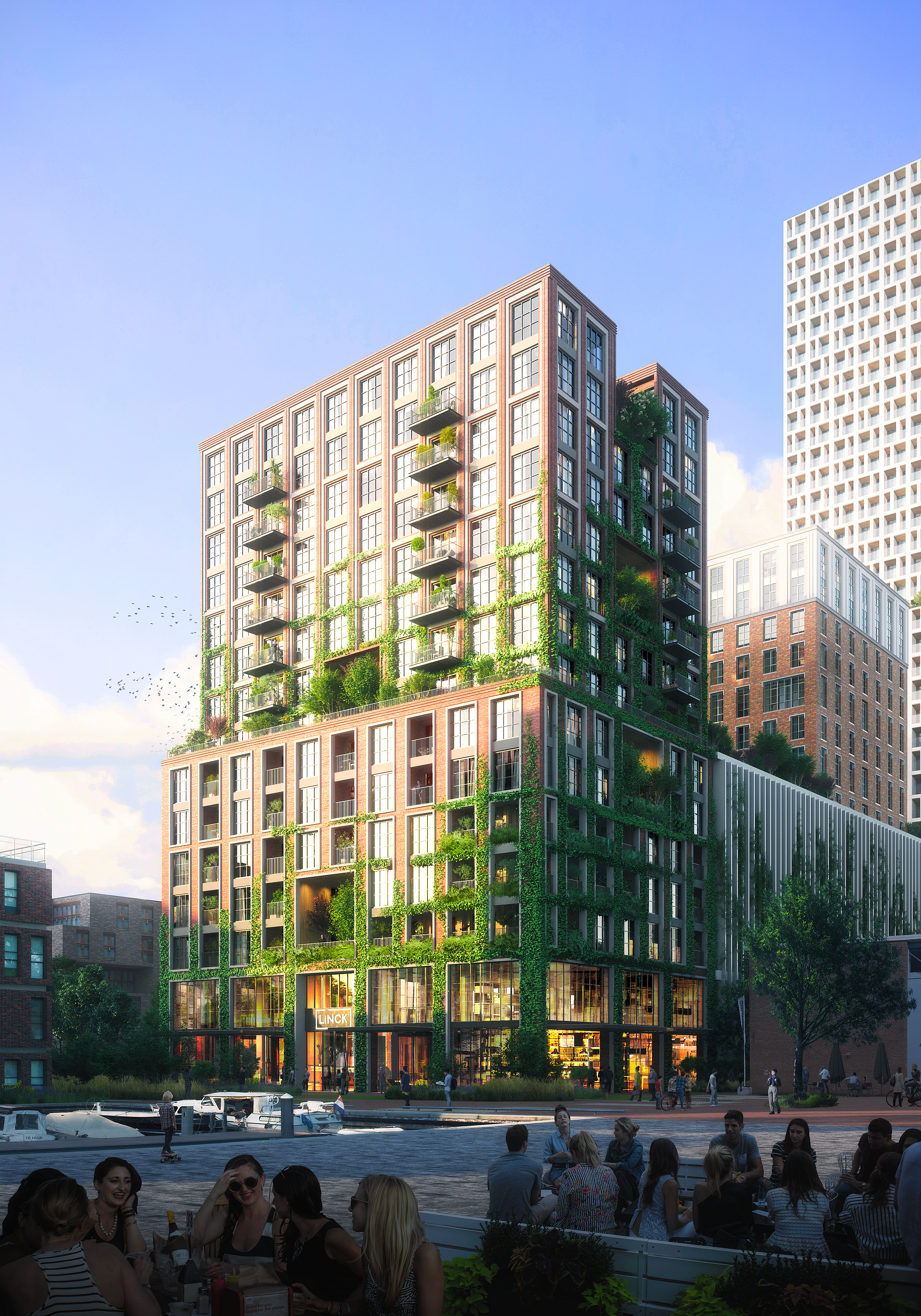 In Linck komen circa 66 woningen voor verschillende doelgroepen en een commerciële plint. Centraal in het gebouw zorgt het opvallende groene atrium voor verbinding tussen wonen, werken en bezoekers. Die verbinding wordt ook gecreëerd in de zogenoemde ‘tuinpockets’: ontmoetingsruimten tussen de woningen, op verschillende lagen in het gebouw. Maar liefst driekwart van de buitenruimte is ingericht als tuin. Door ook een deel van de gevels te laten begroeien en daar ruimte te creëren voor nestelgelegenheden, wordt biodiversiteit gestimuleerd.