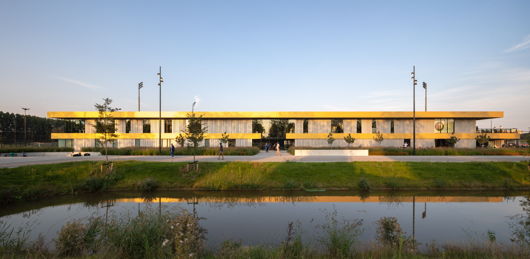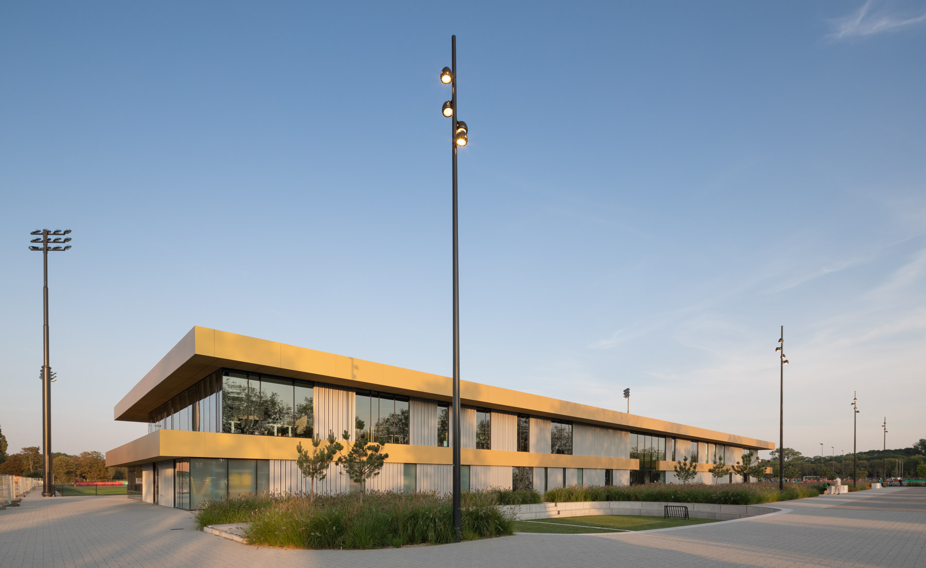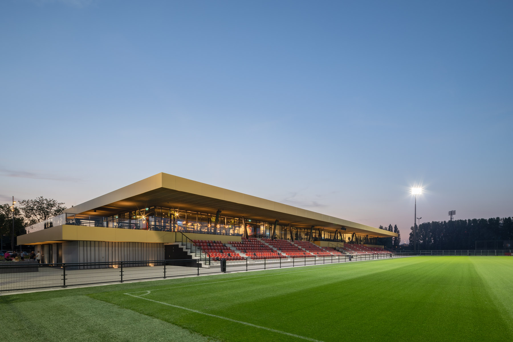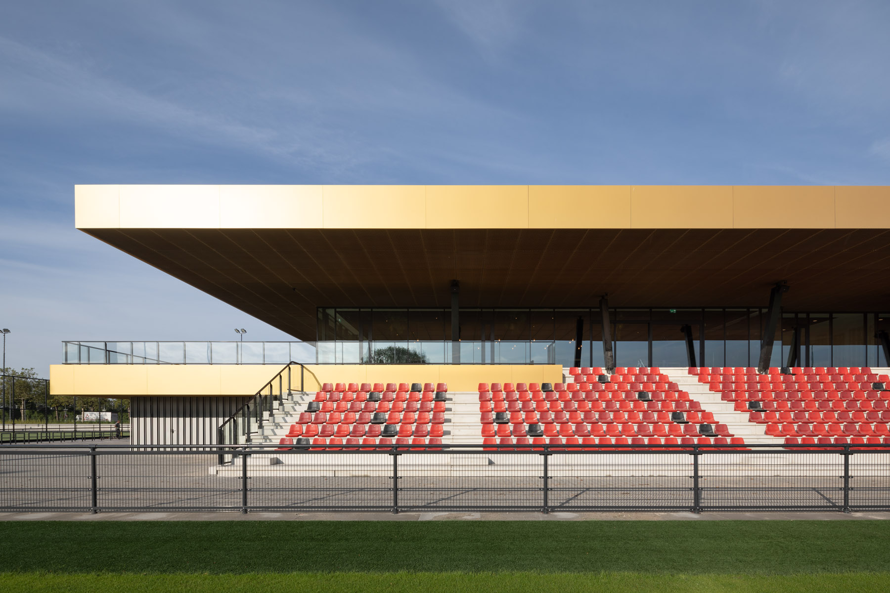 Het gebouw omvat het nieuwe trainingsonderkomen voor de Feyenoord Academy & Sportclub Feyenoord FASC. In het gebouw zijn kleedkamers, een fitnessruimte, kantine en kantoorruimten opgenomen. Aan de veldzijde is een tribune gerealiseerd, waaronder de technische installaties zijn geplaatst. Het gebouw heeft één verdieping en een uitkragend dak boven de tribune en het terras.