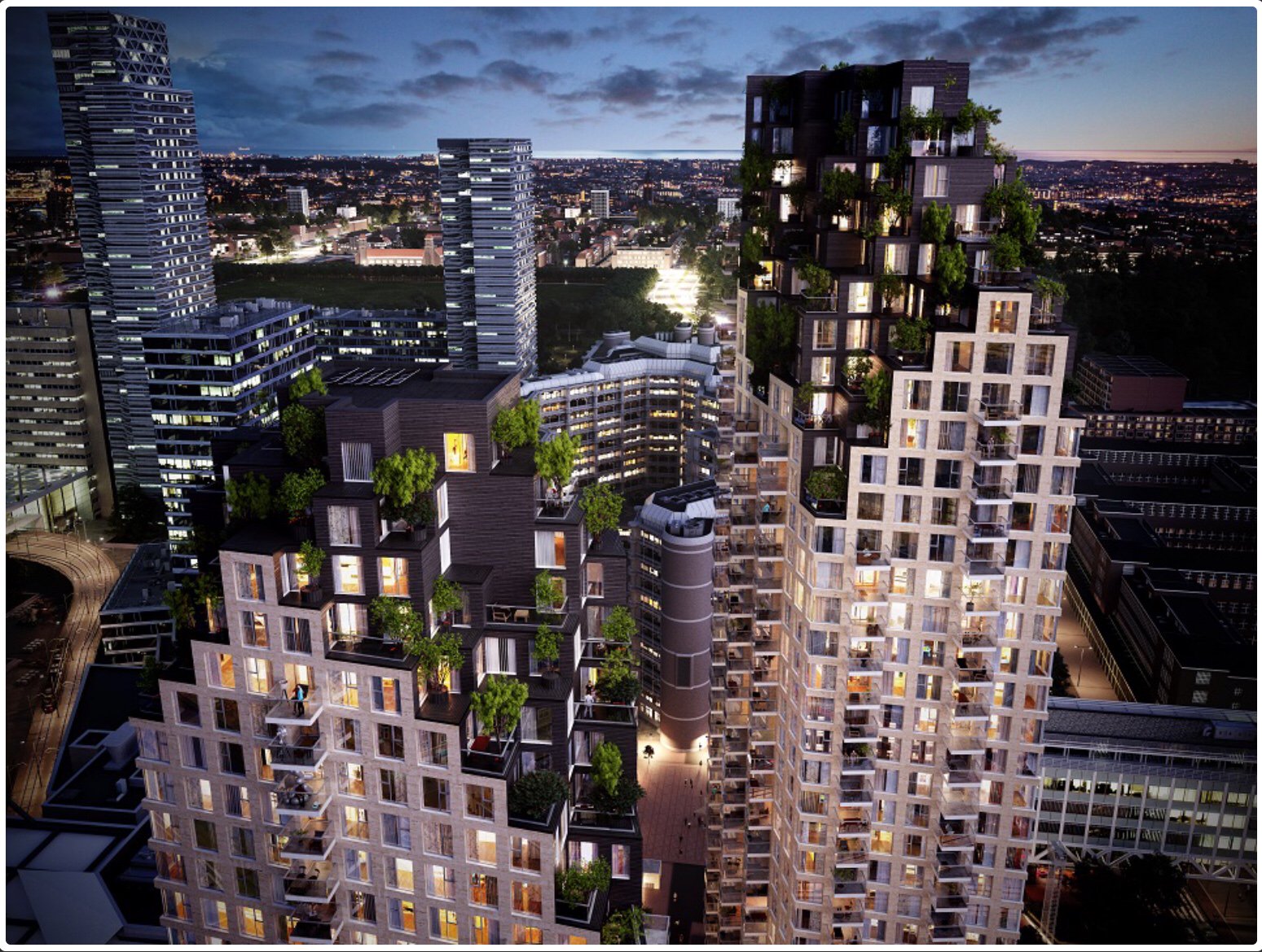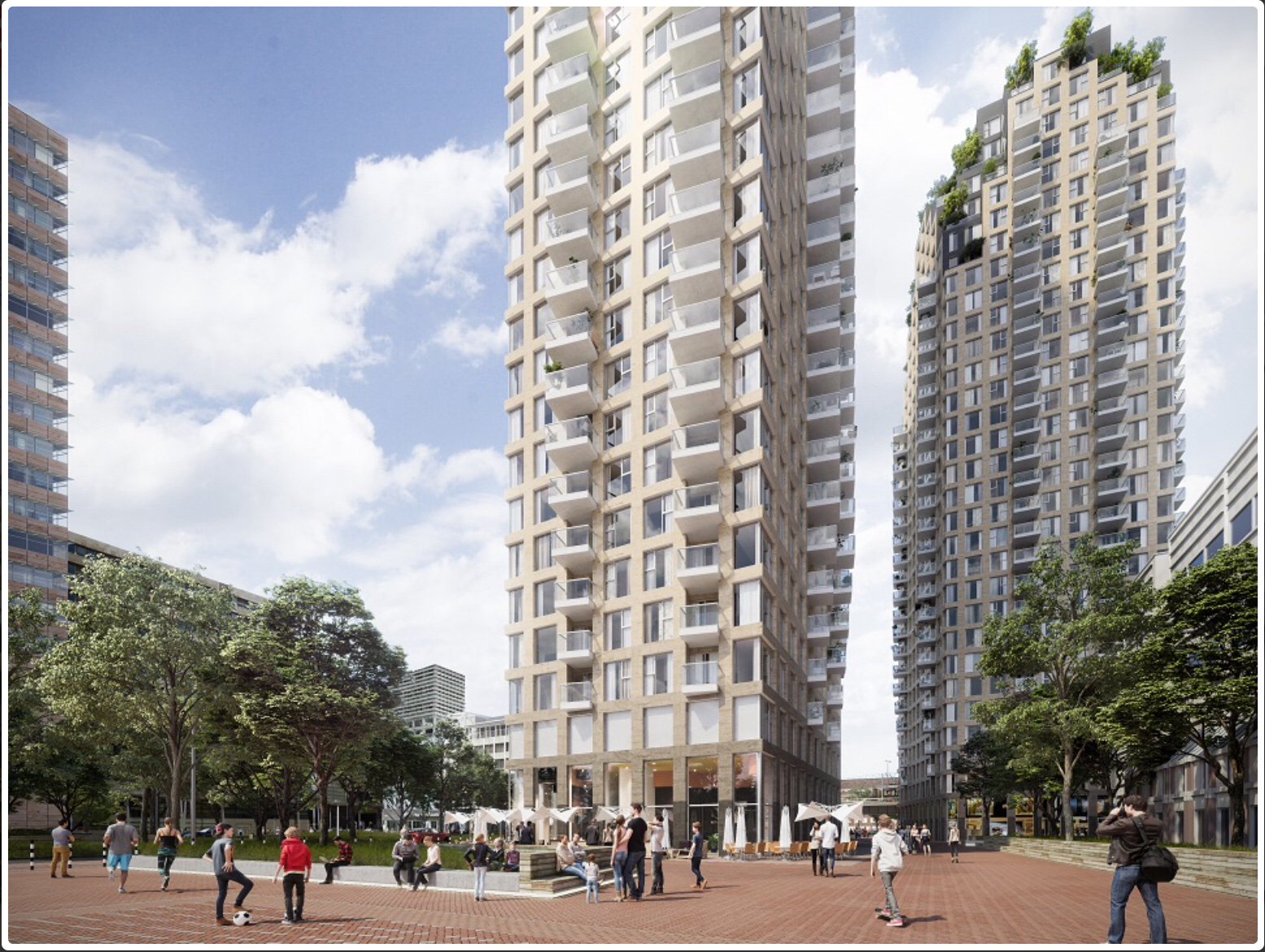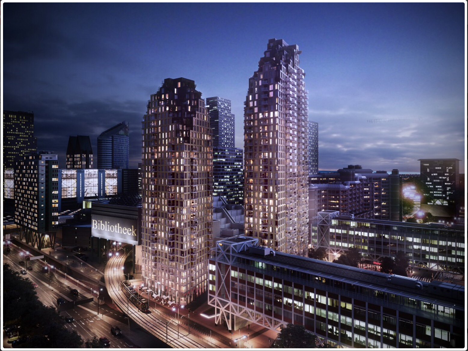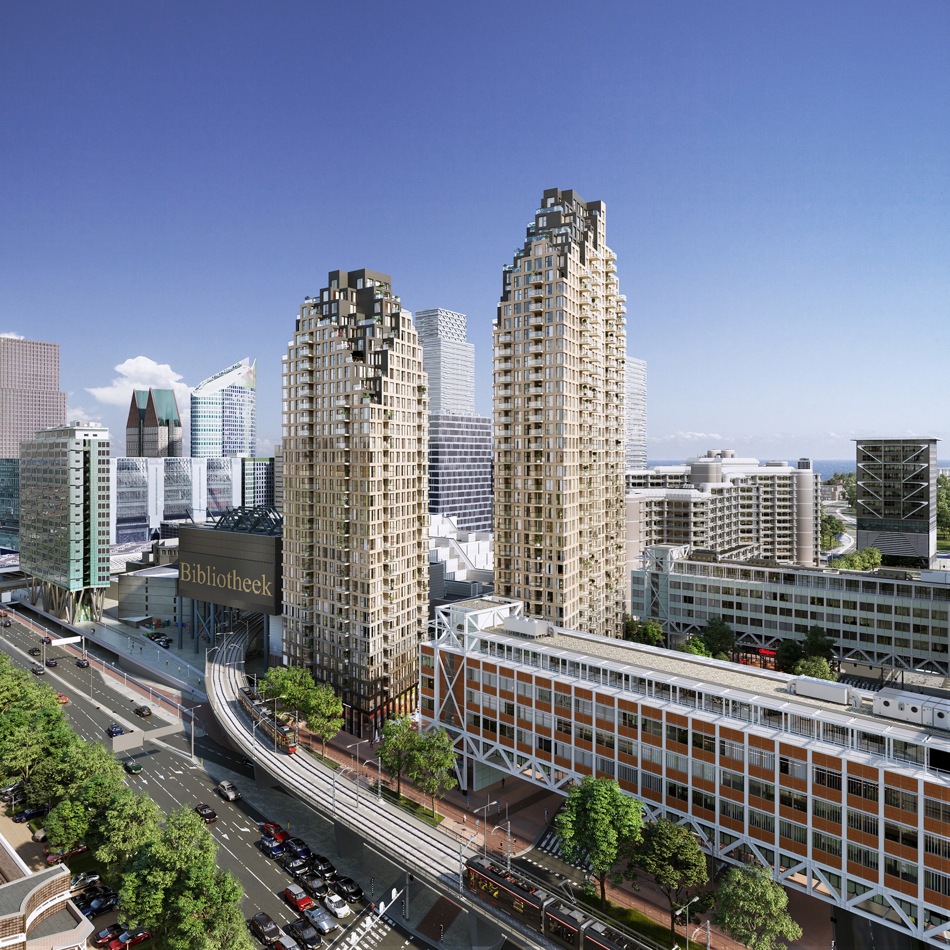 De woontorens op de Grotiusplaats, gelegen tussen de Utrechtsebaan en het Centraal Station, worden ontworpen door Winy Maas van architectenbureau MVRDV en ontwikkeld door Provast. De duurzame gebouwen krijgen gevels van natuursteen en hout, een transparante commerciële plint met onder meer horeca en dienstverlening en een ondergrondse parkeergarage.