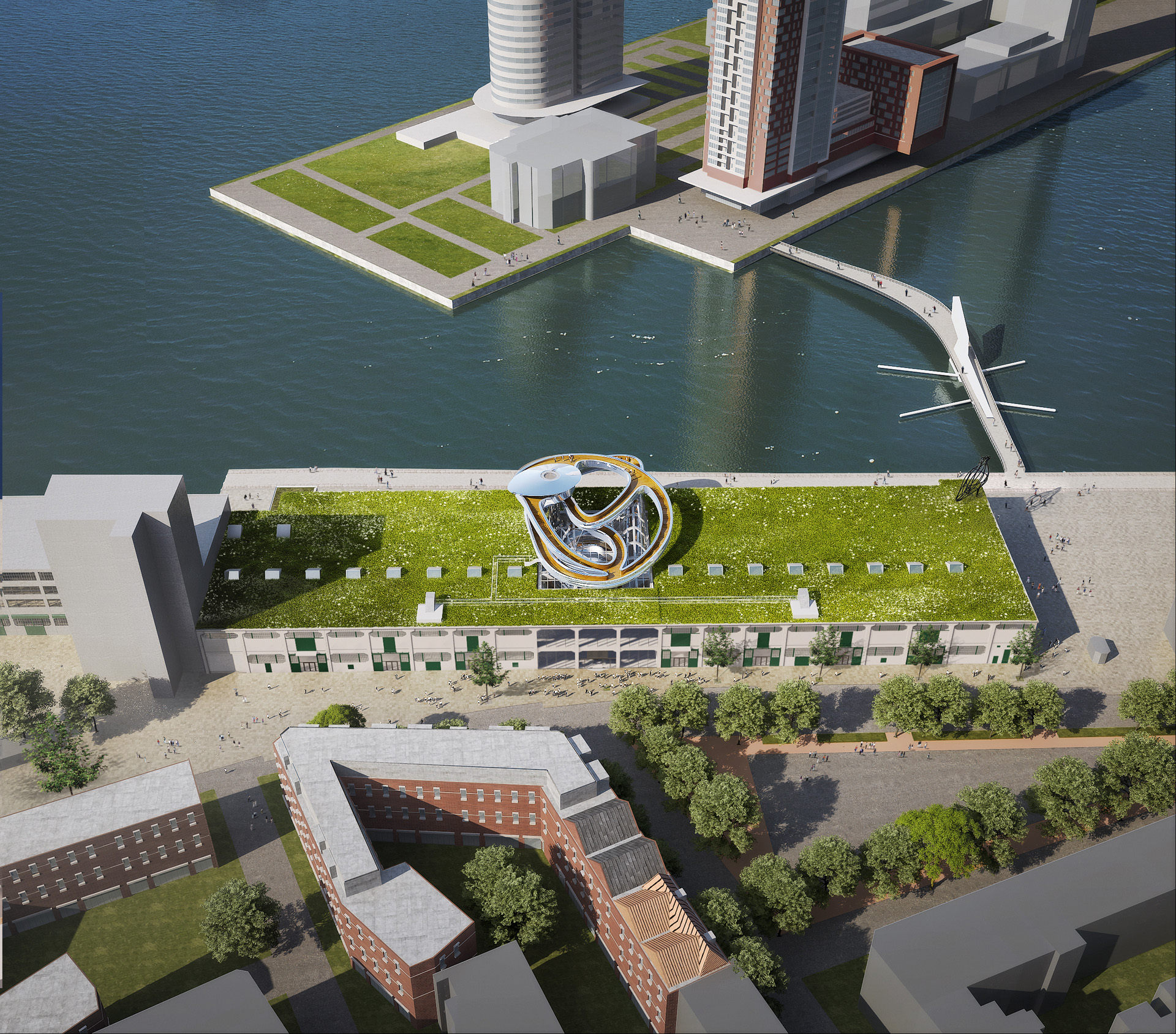 IMd is hoofdconstructeur van dit opvallend, door architectenbureau MVRDV ontworpen, spiegelende gebouw. De schaal-vorm betekent dat alle krachten uit de naar boven uitlopende constructie, zich op een relatief klein grondvlak concentreren. Complicerende factor daarbij is de hoge vloerbelasting van depotgebouwen.
